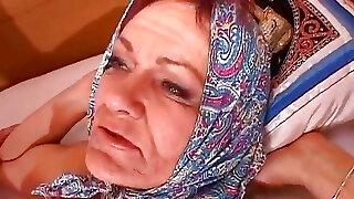 Brunette German granny sucks and rides dick in the apartment