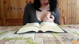 Reading books is so exciting that a brunette orgasms during it