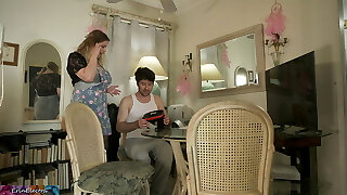 Big Ass Stepmom in Tight Trousers and Stepson in Torn Jeans Take on a New Challenge