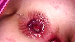 spreading my used brown-eye open after stretching it into a small gape - wooly amateur anal dildo