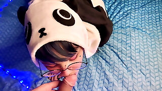 POV video of tattooed dark-haired girlfriend sucking a fat dick