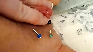 Close Up Big Wet Pierced Jewel Masturbating