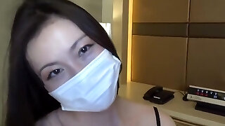 Four'8'' 142cm 9 Month Pregnant Chinese MILF getting fumbled all over with baby lubricant - Double cam view from below and in front
