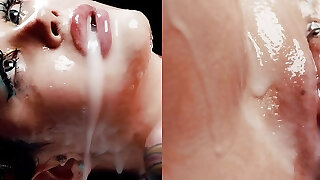 Incredibly beautiful lady sucks her stepbrother's big man-meat and takes cum on her face