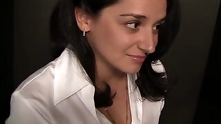 Kinky Brunette Schoolgirl Inhaling Gloryhole Dick