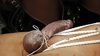 Stretching A-hole With Inflatable Dildo & Fapping His Big Cock While Having Balls Tied