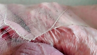 Cum on wife's legs in tights after blowjob and handjob