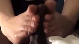 Dasha lubricates up her feet and gives a feet wank to a dildo