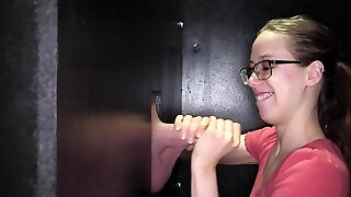 Cute teen swallows hot jizz through the glory hole in a fitting room - Eva Elfie