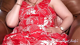 AuntJudys - 53yo Mature Amateur BBW Redhead Fiona has Phone Fuck-fest in Stockings & Garters