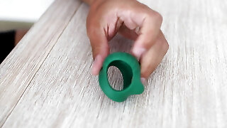 Big boobed BBW wife stretching own cooter with a monstrous dildo in cowgirl and missionary pose