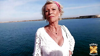 Cathy sucks huge cocks before getting her mature pierced cooch gang banged hard-core in pov