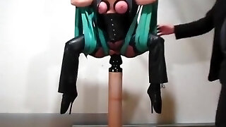 Crystal Cake riding the sybian (and sucking cock)