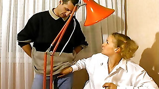 Two old Guys Boink Teenie with Glasses at Office - GERMAN RETRO
